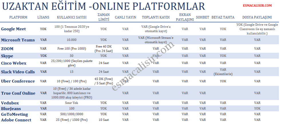Senkron ve asenkron uzaktan eğitim yöntemleri mevcut; ancak genelde senkron eğitime odaklanılmış durumda ve bu yönde en ideal programlar aranmaya incelenmeye başlandı.