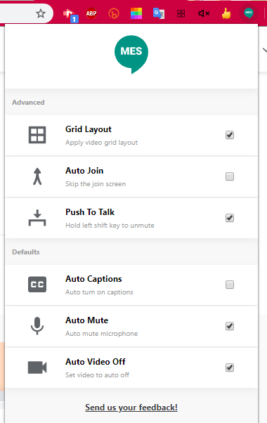 Google Meet Enhancement Suite – Grid & more uzantısı ise Meet için hem grid view özelliği hem otomatik ses ve kamera kapatma hem toplantıya otomatik katılma hem de shift tuşuna basarak konuşma gibi bir dizi özellik getiriyor.