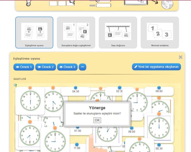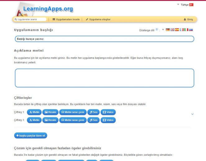 Learningapps’in en sevdiğim yanı uygulama üzerine tıkladığınızda ilk önce uygulamayla ilgili üç adet örnek önizleme sunmasıdır. Bu sayede uygulamanın nasıl çalıştığını görüyor ve nasıl düzenleyeceğiniz konusunda fikir sahibi oluyorsunuz.