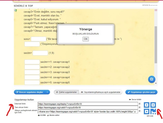 Sayfanın en altında yer alan önizle ve tamamla butonuna basarak uygulamayı kaydedebilirsiniz. Buradaki önizleme yapma şansı vermesi de yine hataları görme ve düzeltme fırsatı sunuyor bize. Tüm kontroller yapıldı ise tamamla diyebilirsiniz ve alt bölümde yer alan uygulama linklerini öğrencilerinizle paylaşarak etkinliğinizi uygulayabilirsiniz.
