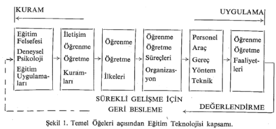 Eğitim teknolojisi, esas itibariyle, belirli eğitim hedefleri yönünde, belirli bir içerik’i uygun süreçler yoluyla uygulamaya koymak ve bu uygulama sonuçlarını değerlendirme faaliyetidir.