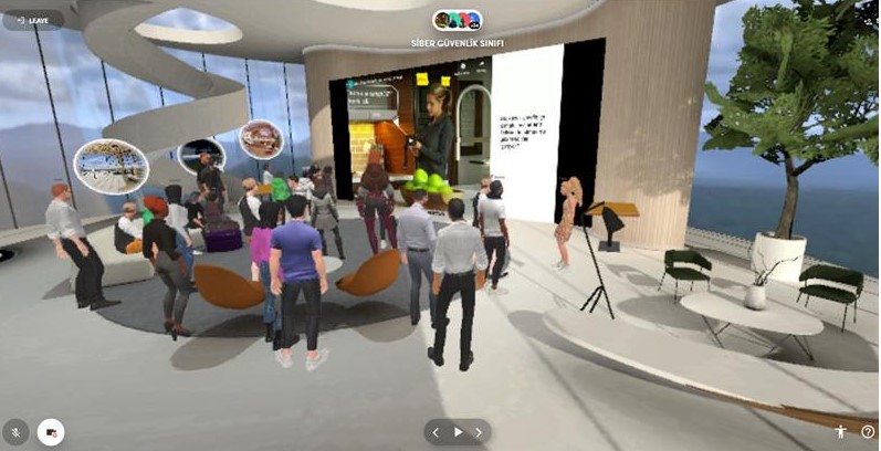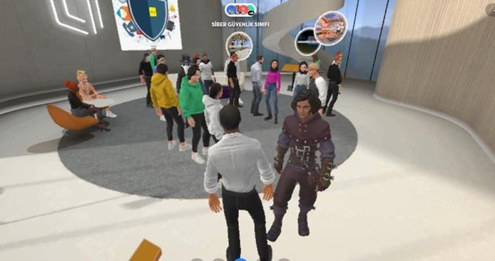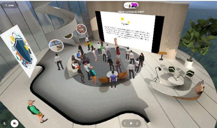 Facebook tarafından Metaverse olarak anılan sürükleyici gerçeklik destekli bir ortak çalışma alanı olarak hizmet veren Spatial, kişilerin ortamlara avatarı ile katılmasını, 3D modellerin, videoların, fotoğrafların, dokümanların ve web sitelerinin paylaşılmasını sağlıyor. Bilişim sistemlerinde karşılaşılan güvenlik ihlalleri ile tehditlerin anlaşılabilmesi ve siber saldırılara karşı alınması gereken önlemler konusunda eğitim veren Esma Ç. ÇALIŞIR ve Fırat Hayyam SABUNCU, öğrenciler ile ayrıca siber güvenliğin teknik, yasal, etik, sosyal ve kültürel yönlerini de bu sanal ortamda tartıştı. Webinarın son bölümünde ise öğrencilerimizin ortam ve içerisindeki nesneleri ile etkileşime girmeleri sağlanarak ortamdaki ögelerin tasarımını ve düzenli ile ilgili deneyim kazanmalarına fırsat verildi.
